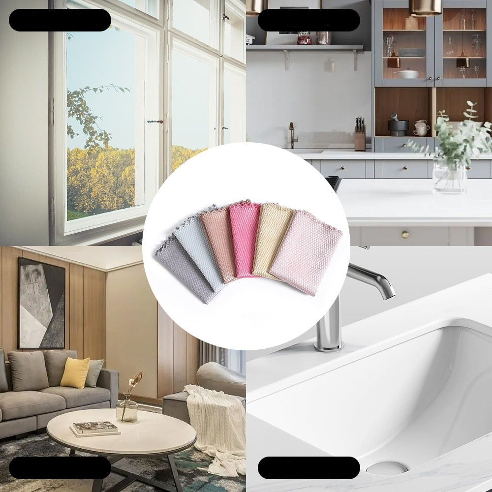 Great for any surface: Our Fish Scale Magic Microfiber does it all. It's perfect for polishing mirrors and glass, removing stains fingers, dust, cleaning spills and even the toughest stains, drying dishes and kitchen utensils, cleaning countertops, cleaning windows, dusting, etc;