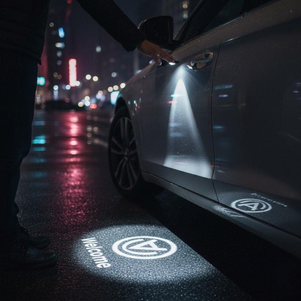 - Persistent Uniformity Luminescence: Using high brightness LED bulb, our WellDoor Welcome LED's have incredible lighting output with high definition and clear and bright logo projection that lights up automatically when opening your car doors;
